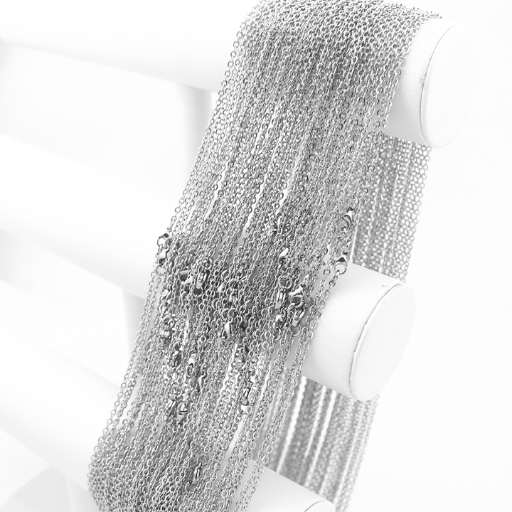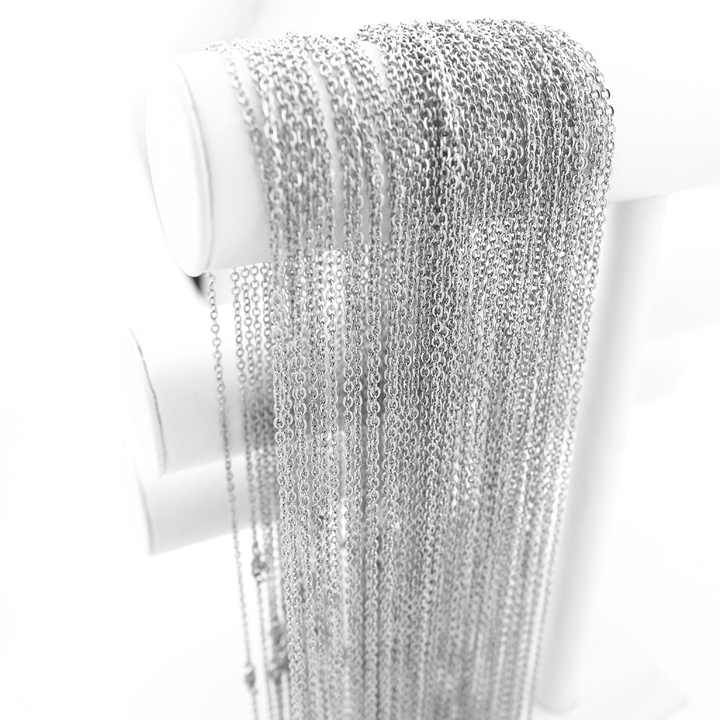 Dây chuyền inox chữ cong mắc xích 2,4mm được bán bỏ sỉ tại trang sức inox titan công sang CSJ- Xưởng sản xuất chuyên sỉ và lẻ trang sức titan nam nữ tại HCM.