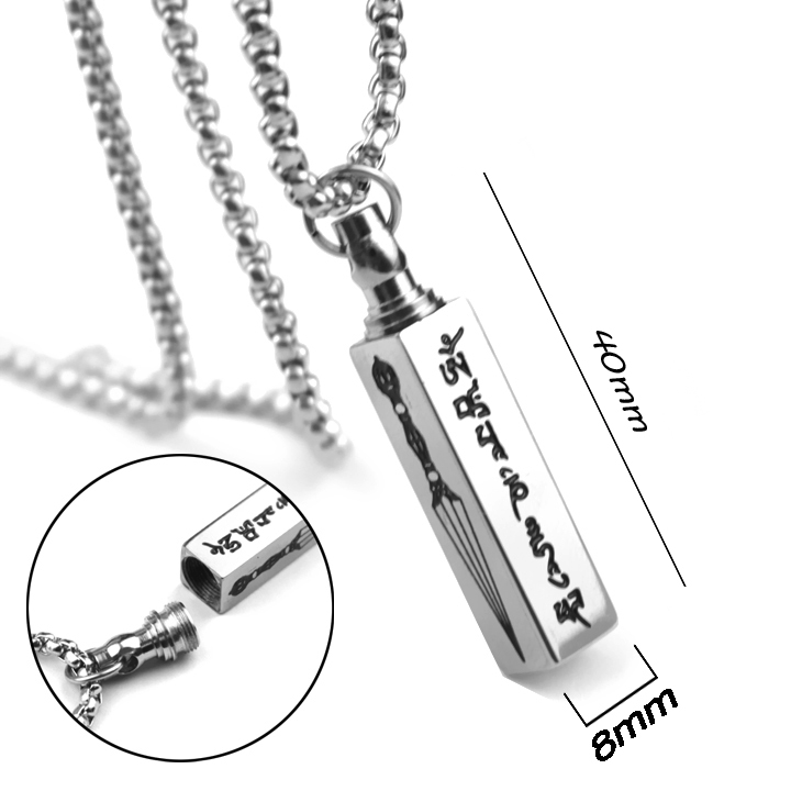 Mặt dây chuyền titan inox chú Úm ma ni bát ni hồng , vòng cổ inox hình trụ vuông CHÚ OM MANI PADME HUM mang lại bình an , xua đuổi tà ma giúp bạn gặp nhiều may mắn .