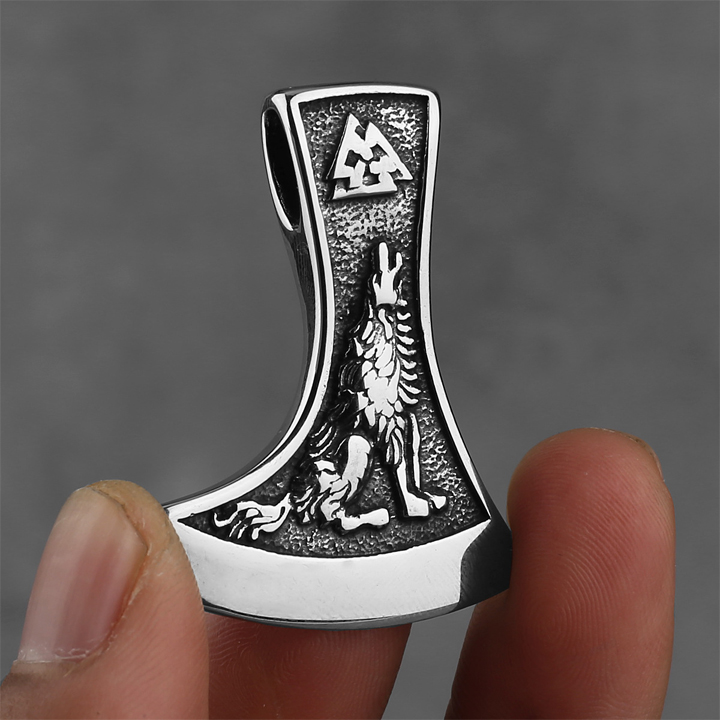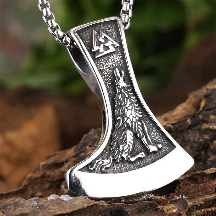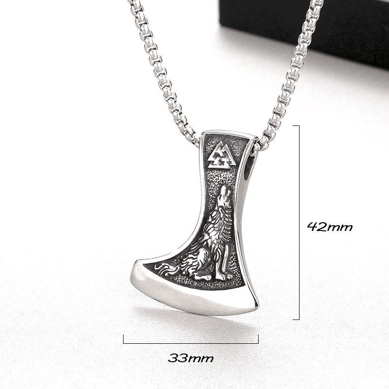 MD102 Mặt dây chuyền titan Rìu Viking chạm hình chó sói