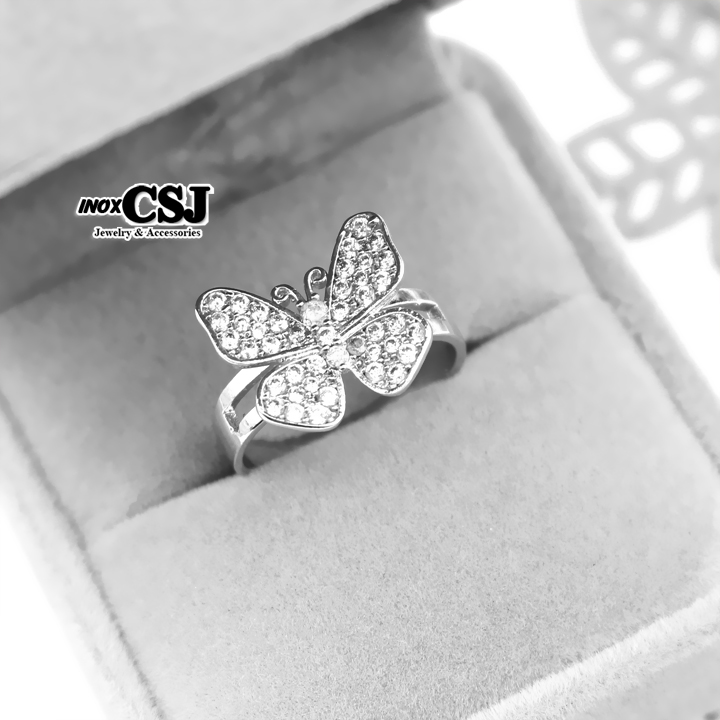 N161g-nhẫn nữ inox hình con bướm cao cấp không đen giá rẻ