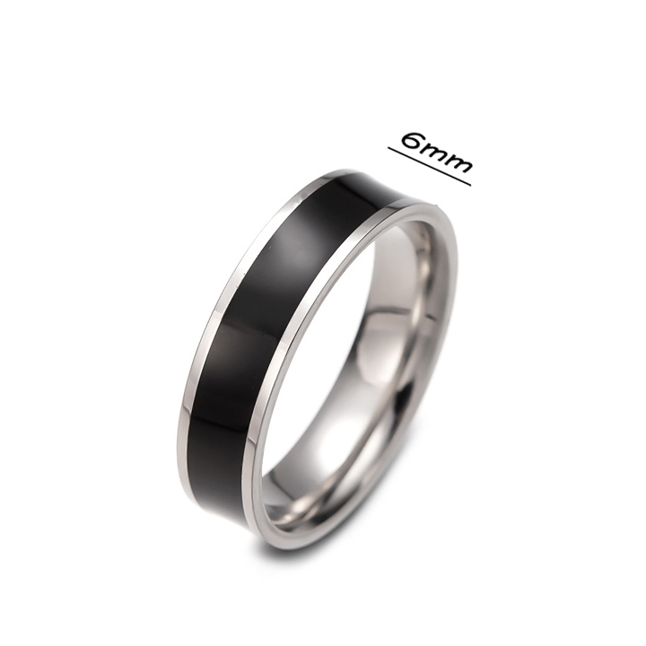 N504 Nhẫn titan bảng 6mm sọc đen (Size 7)