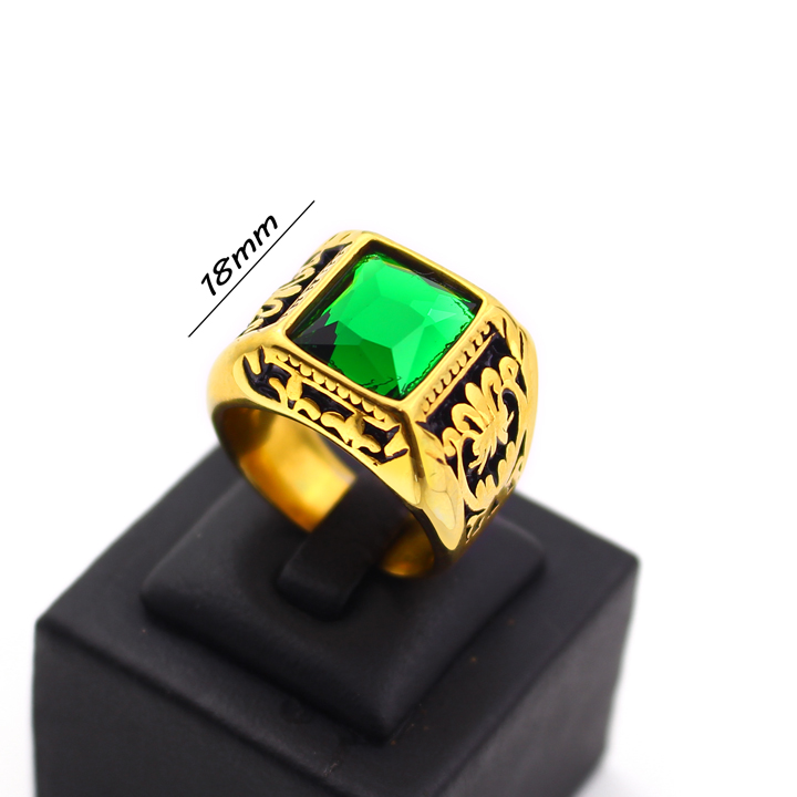 N528 Nhẫn nam titan mạ vàng đính đá màu xanh lá