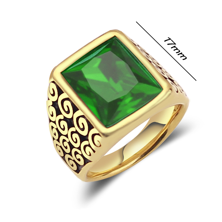 Nhẫn nam inox mạ vàng đá xanh lá họa tiết xoắn ốc trẻ trung giá rẻ nhất HCM bán tại CSJ – Công Sang Shop