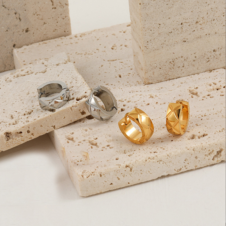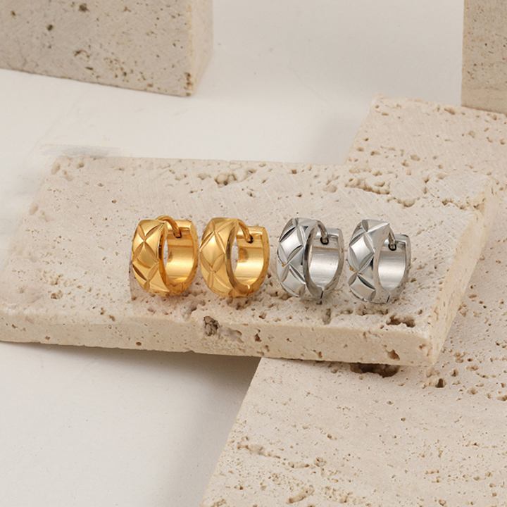 TB245e Bông tai nữ titan khoen tròn bảng 5mm họa tiết quả trám