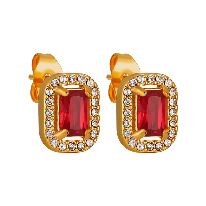 Bông hoa tai titan hình chữ nhật đính đá đỏ cực xinh chất liệu titan không đen, nơi bán các mẫu hoa tai bông tai titan inox nữ thời trang Hàn Quốc bằng chất liệu titan cao cấp chất lượng uy tín nhất HCM.