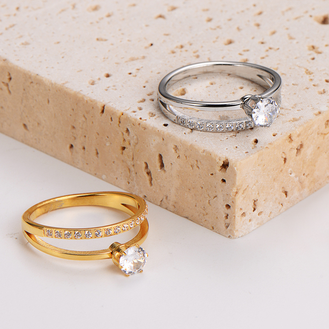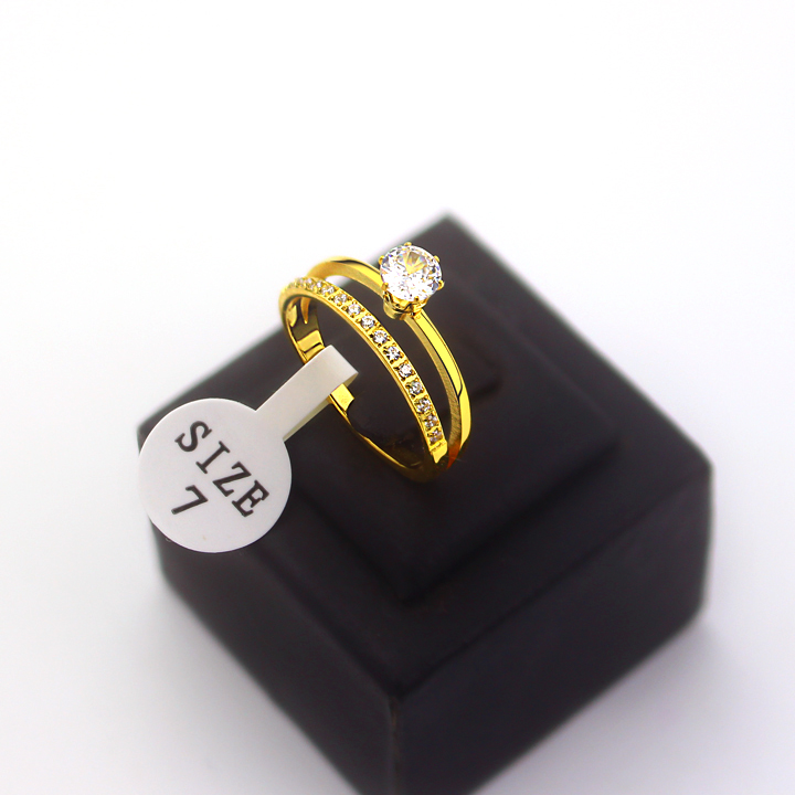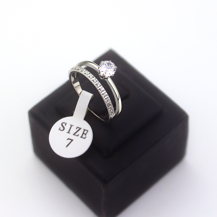 TC226k Nhẫn nữ titan 1 hàng đá nhỏ và kết hợp 1 hột cao