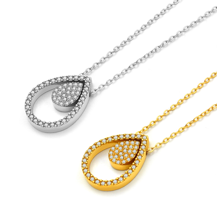 TN114c Dây chuyền nữ titan hình giọt nước đính full kim