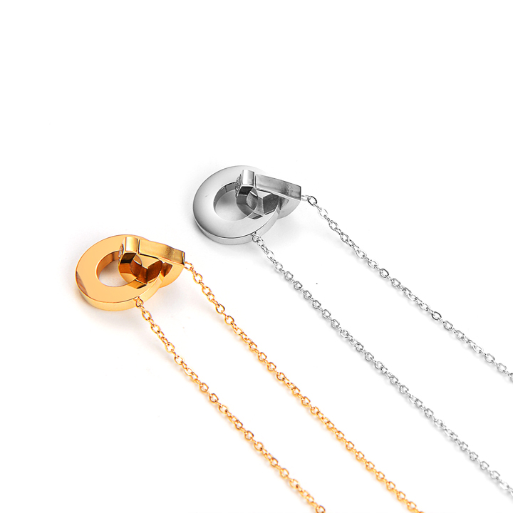 TN643g Dây chuyền nữ titan chữ D và vòng tròn lồng vào nhau