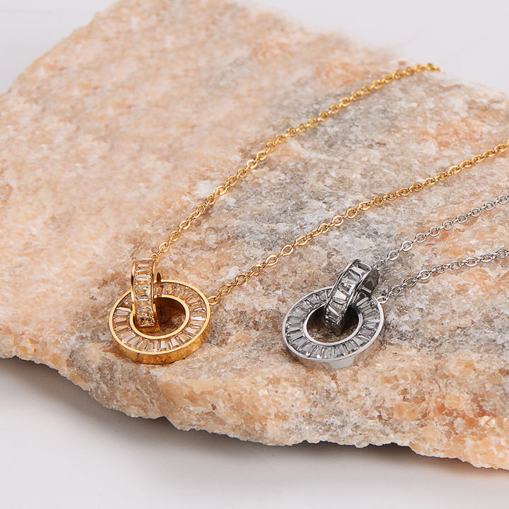 Dây chuyền nữ titan chữ D và vòng tròn lồng vào nhau được thiết kế tinh xảo đính đá đẹp mắt mạng lại vẻ đẹp quyến rũ cho người đeo . Trang sức inox titan Công Sang chuyên buôn sỉ lẻ các mẫu dây chuyền , vòng cổ nữ titan thời trang chất lượng cao giá tốt nhất thị trường. Chúng tôi rất hoan nghênh chào đón quí khách mọi miền đất đến đàm phán hợp tác với tiêu chí giá tốt nhất chất lượng cao mẫu mã đa dạng .
