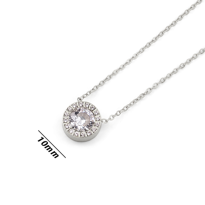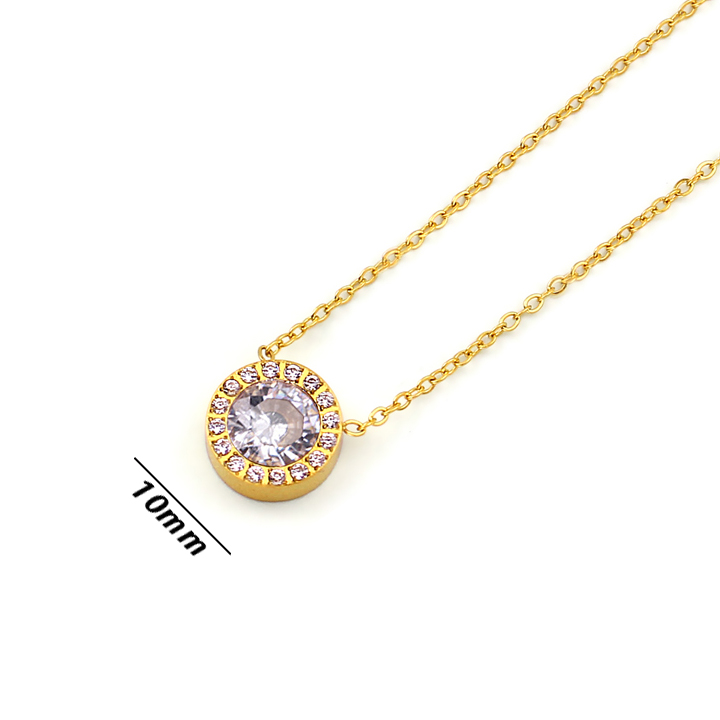 Dây chuyền nữ titan mặt tròn đính viên đá chủ 6ly được thiết kế tinh xảo với mặt hinh tròn được đính viên đá chủ 6ly ở giữa kết hợp đính nhiều viên đá tấm chạy vòng tròn xung quanh đẹp mắt mang lại vẻ đẹp sang trong đẳng cấp cho người đeo . Trang sức inox titan Công Sang chuyên buôn sỉ lẻ các mẫu dây chuyền , vòng cổ nữ titan thời trang chất lượng cao giá tốt nhất thị trường. Chúng tôi rất hoan nghênh chào đón quí khách mọi miền đất đến đàm phán hợp tác với tiêu chí giá tốt nhất chất lượng cao mẫu mã đa dạng .