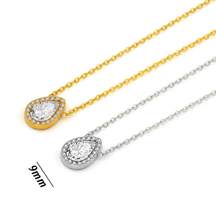 Dây chuyền nữ titan mặt hình giọt nước được thiết kế tinh xảo với mặt hinh giọt nước được đính viên chủ Moissanite hình giọt nước ở giữa kết hợp đính nhiều viên đá tấm chạy vòng xung quanh đẹp mắt mang lại vẻ đẹp sang trong đẳng cấp cho người đeo . Trang sức inox titan Công Sang chuyên buôn sỉ lẻ các mẫu dây chuyền , vòng cổ nữ titan thời trang chất lượng cao giá tốt nhất thị trường. Chúng tôi rất hoan nghênh chào đón quí khách mọi miền đất đến đàm phán hợp tác với tiêu chí giá tốt nhất chất lượng cao mẫu mã đa dạng .