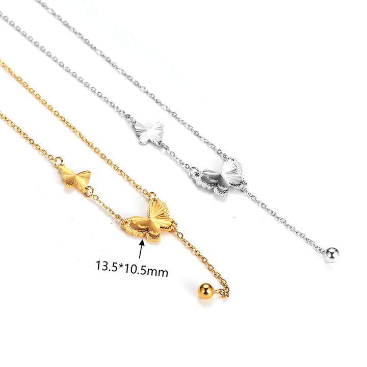 Dây chuyền nữ titan con bướm chạm khía được thiết kế đẹp mắt với đường nét gia công chạm móc máy vô cùng tinh xảo mang lại vẻ đẹp sang trọng quyến rũ cho người đeo . Trang sức titan Công Sang chuyên buôn sỉ lẻ các mẫu dây chuyền vòng đeo cổ titan inox thời trang Hàn Quốc chất lượng cao giá tốt nhất thị trường. Chúng tôi rất hoan nghênh chào đón quí khách mọi miền đất nước đến đàm phán hợp tác với tiêu chí giá tốt nhất chất lượng cao mẫu mã đa dạng .