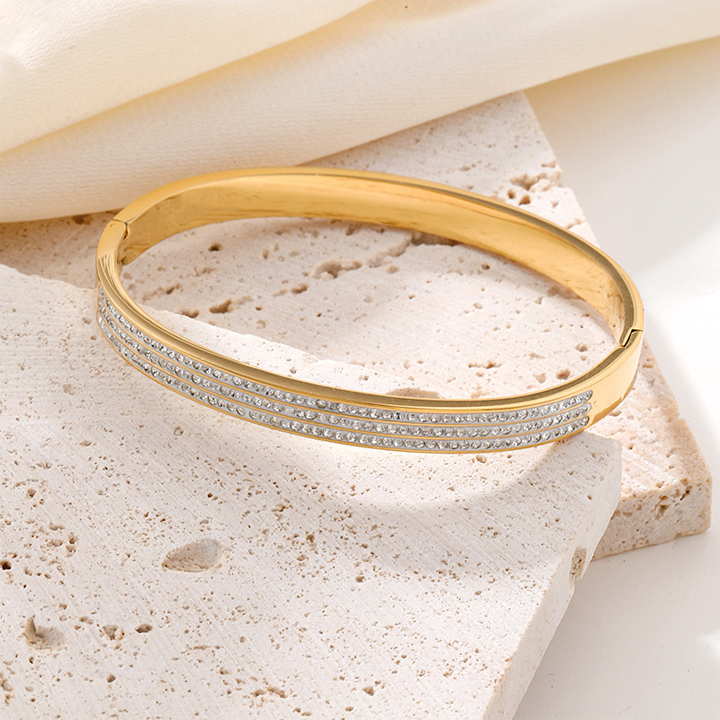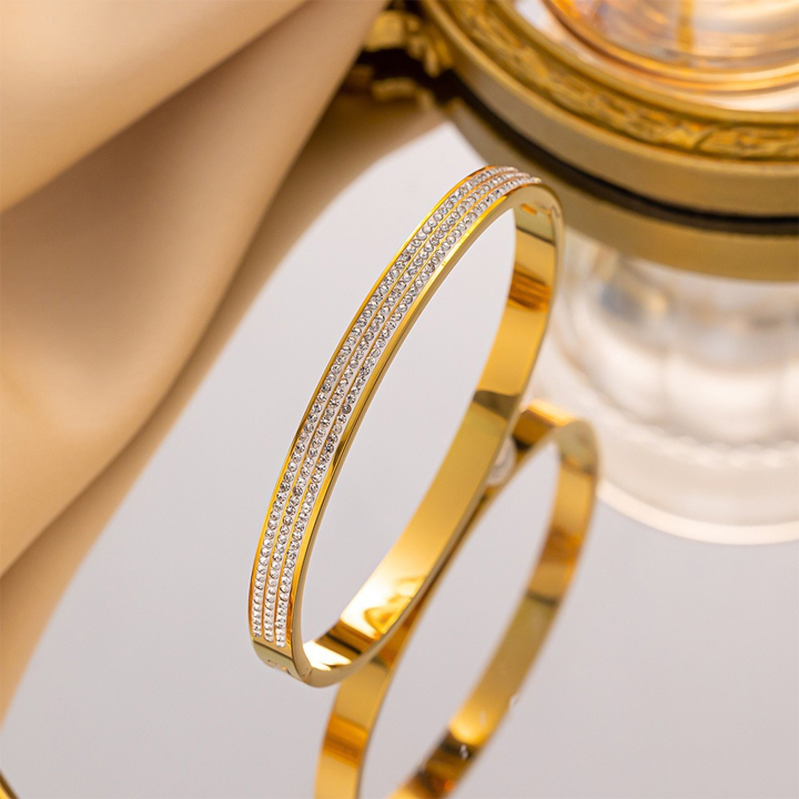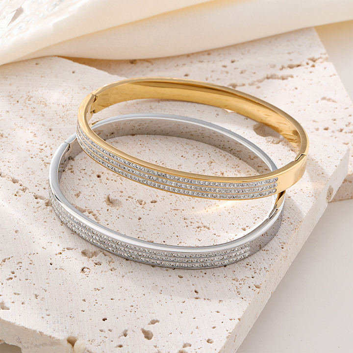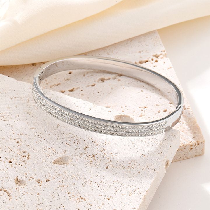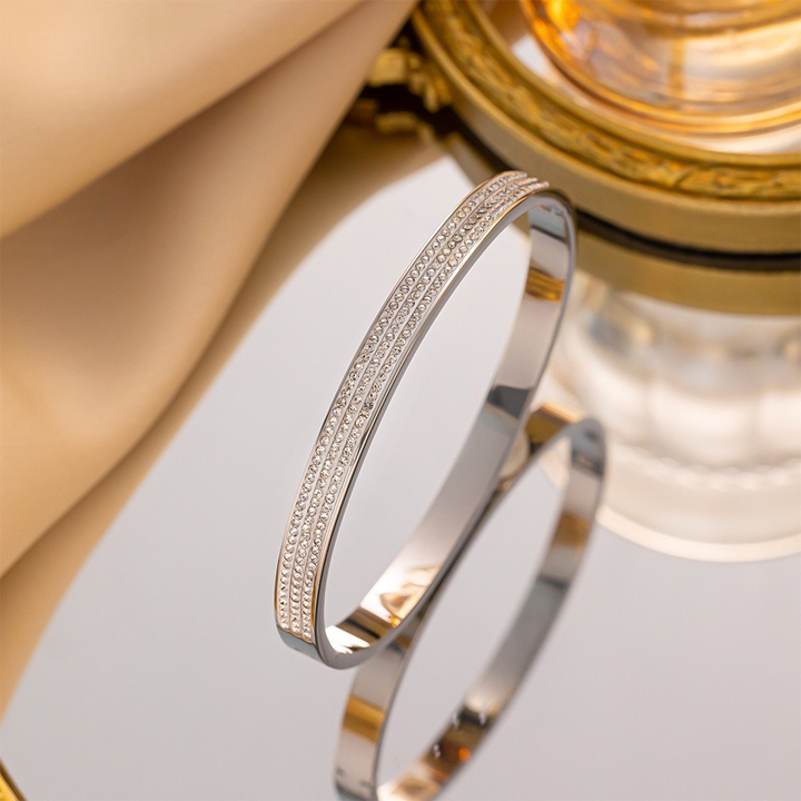 TV147f Vòng tay inox titan thời trang 3 hàng đá kim cương