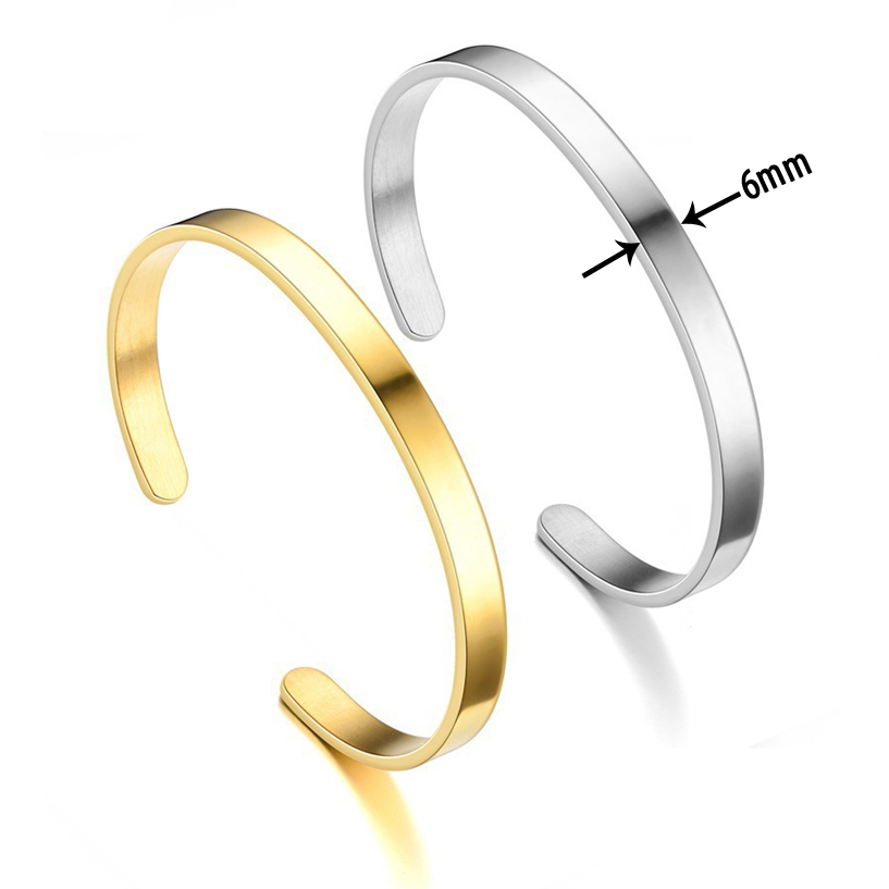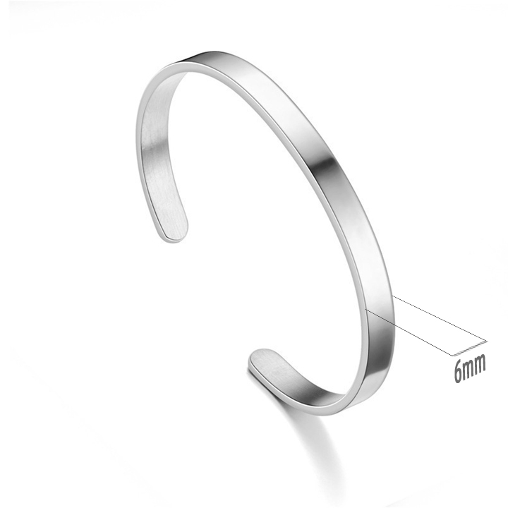 TV058a Vòng tay nữ titan inox kiểu hở chữ C bảng 6mm