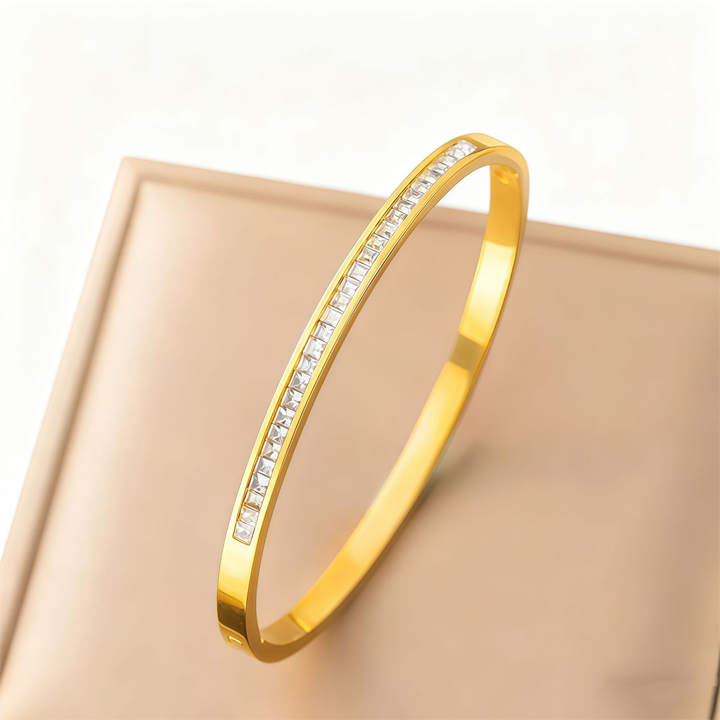 Vòng tay titan 1 hàng đá vuông, Vòng tay 1 hàng đá vuông chất liệu titan xi màu vàng, màu hồng sang trọng , nơi bán vòng đep tay titan nữ thời trang Hàn Quốc bằng chất liệu titan cao cấp chất lượng uy tín nhất HCM.