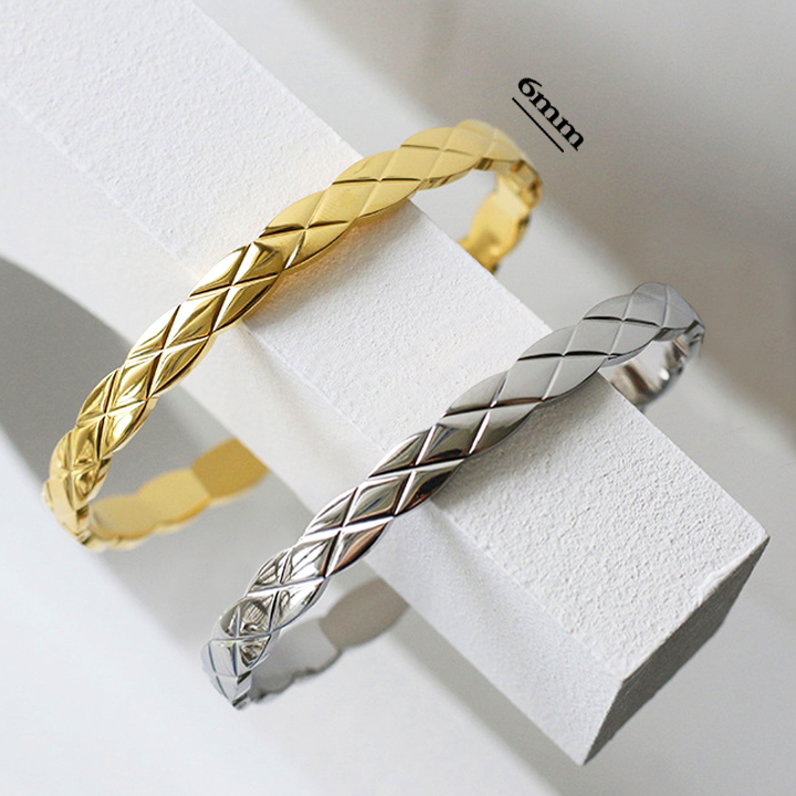 TV123b Vòng tay nữ titan họa tiết hình quả trám bảng 6mm