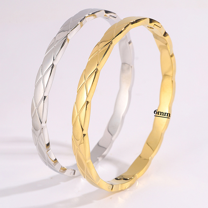Vòng tay titan bảng 6mm chạm hình quả trám được thiết kế đẹp mắt tinh xảo mang lại vẻ đẹp sang trọng cho người đeo . Trang sức titan Công Sang chuyên buôn sỉ lẻ các mẫu vòng tay nữ titan inox thời trang Hàn Quốc chất lượng cao giá tốt nhất thị trường. Chúng tôi rất hoan nghênh chào đón quí khách mọi miền đất nước đến đàm phán hợp tác với tiêu chí giá tốt nhất chất lượng cao mẫu mã đa dạng .