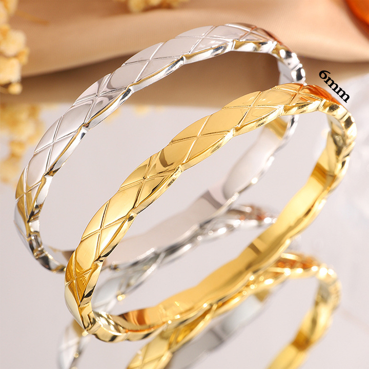TV123c Vòng tay nữ titan họa tiết hình quả trám bảng 6mm