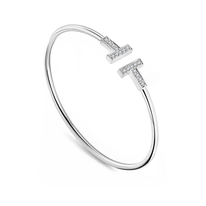 TV121 Vòng tay titan nữ 2 chữ T đính đá Tiffany