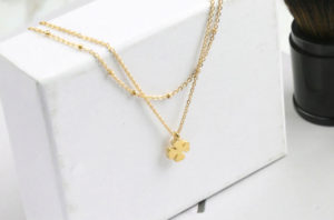 Lắc chân titan cỏ 4 lá 2 tầng màu vàng tươi cực đẹp sang trọng