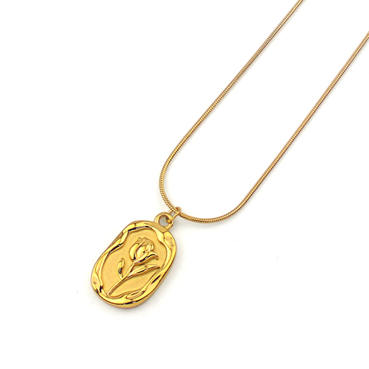 TN218g Dây chuyền nữ titan mặt hình hoa hồng màu vàng