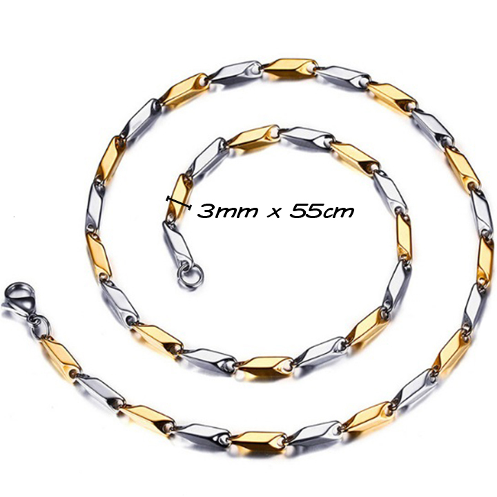 DN033a Dây chuyền nam inox hỏa tiển 3mm trơn trắng vàng