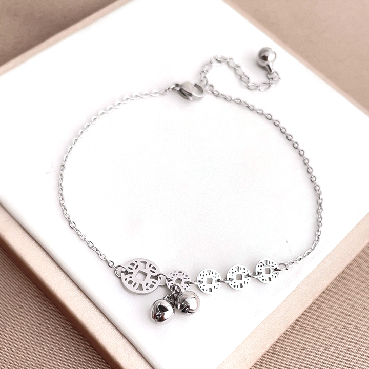 TA509h Lắc chân titan 5 đồng kim tiền có gắn chuông
