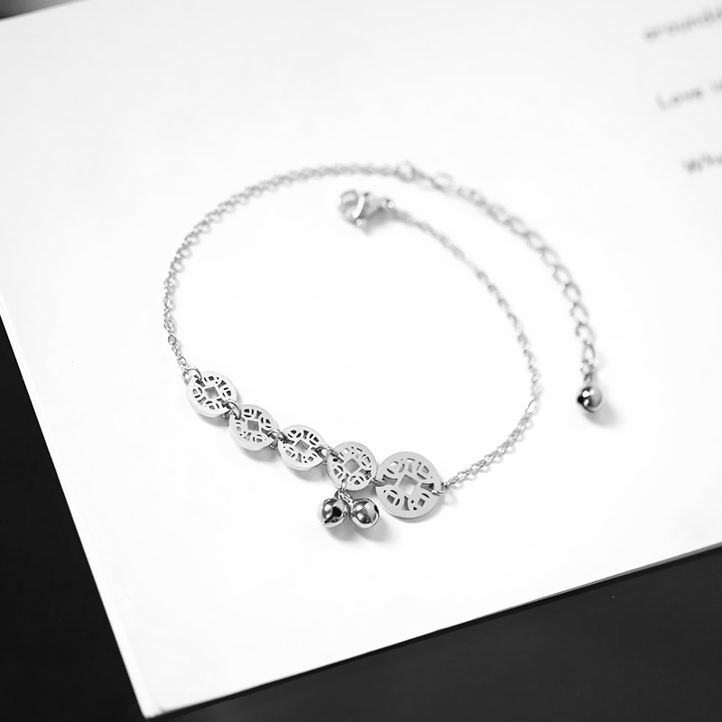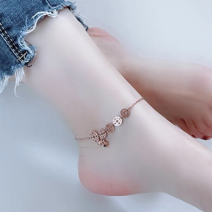 TA509g Lắc chân titan 5 đồng kim tiền có gắn chuông