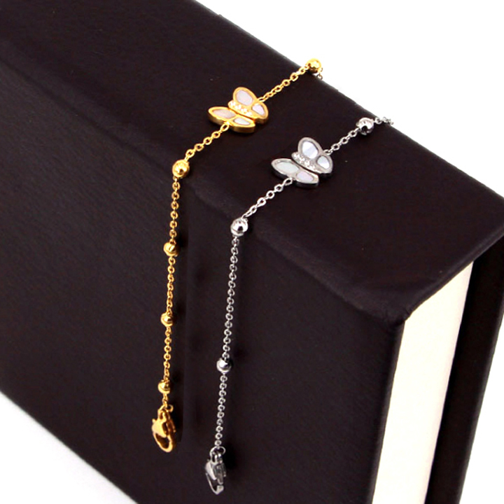 Lắc tay titan hình con bướm được thiết kế đẹp mắt tinh xảo mang lại vẻ đẹp sang trọng cho người đeo . Trang sức titan Công Sang chuyên buôn sỉ lẻ các mẫu lắc tay titan thời trang Hàn Quốc chất lượng cao giá tốt nhất thị trường. Chúng tôi rất hoan nghênh chào đón quí khách mọi miền đất nước đến đàm phán hợp tác với tiêu chí giá tốt nhất chất lượng cao mẫu mã đa dạng .