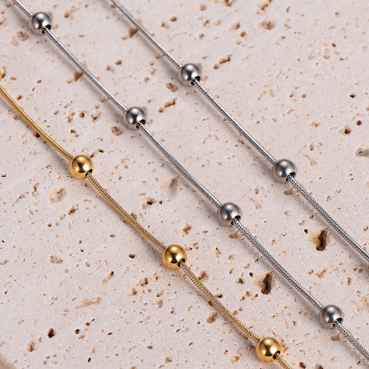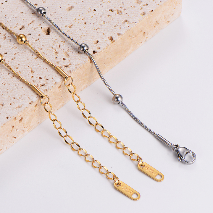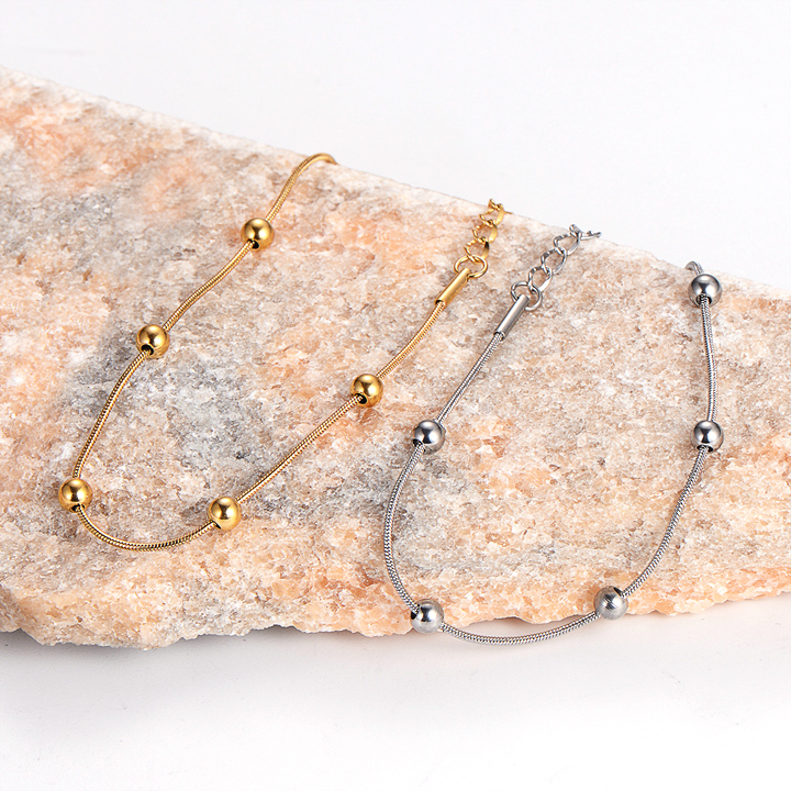 TA244b Lắc tay titan dây mì tròn kết bi cách điệu