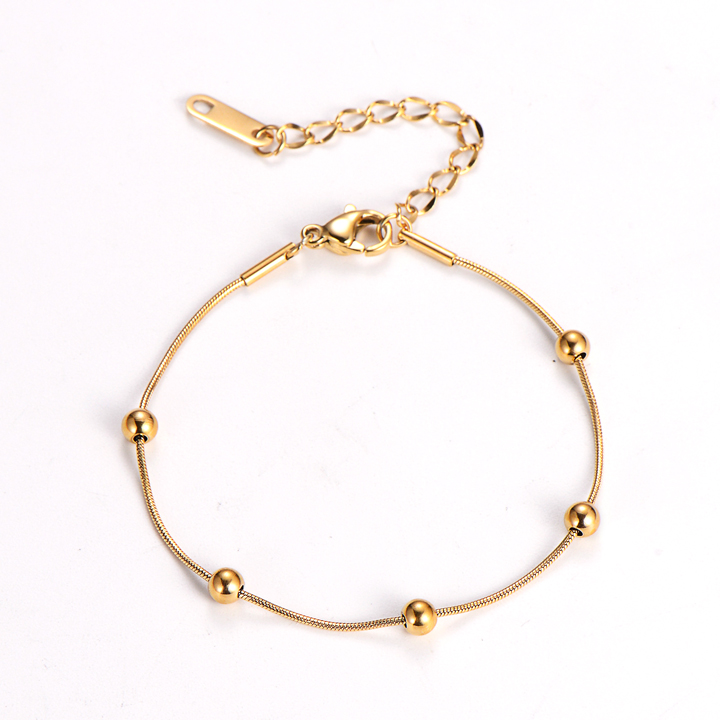TA244g Lắc tay titan dây mì tròn kết bi cách điệu màu vàng