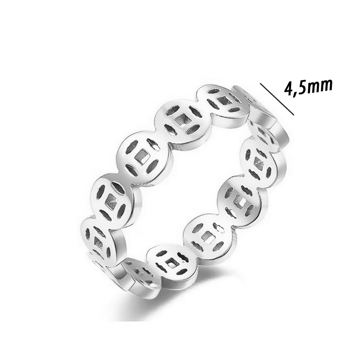 TC151a Nhẫn nữ titan họa tiết kim tiền mang đến sự tài lộc và may mắn
