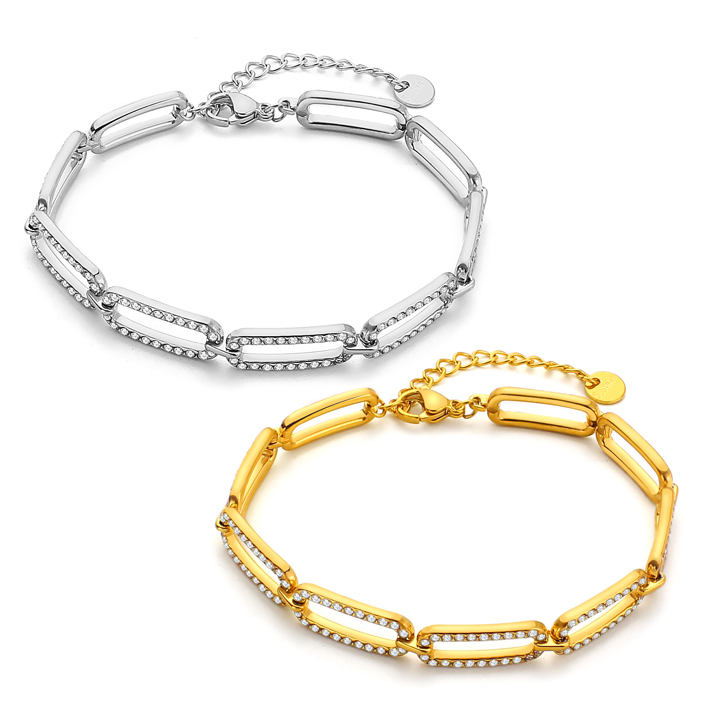 TA322b Lắc tay nữ titan ô chữ nhật đính full kim màu thép