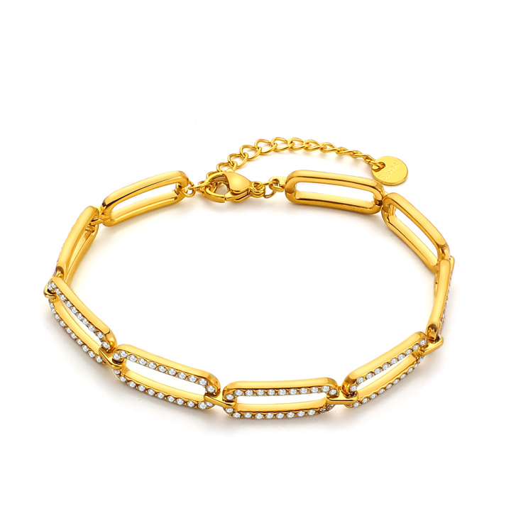 TA322d Lắc tay nữ titan ô chữ nhật đính full kim màu vàng
