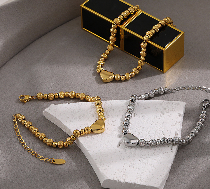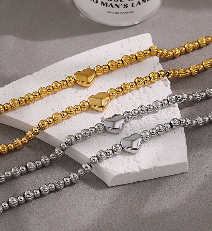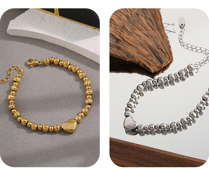 TA662e Lắc tay bi titan trái tim cách điệu bi móc máy