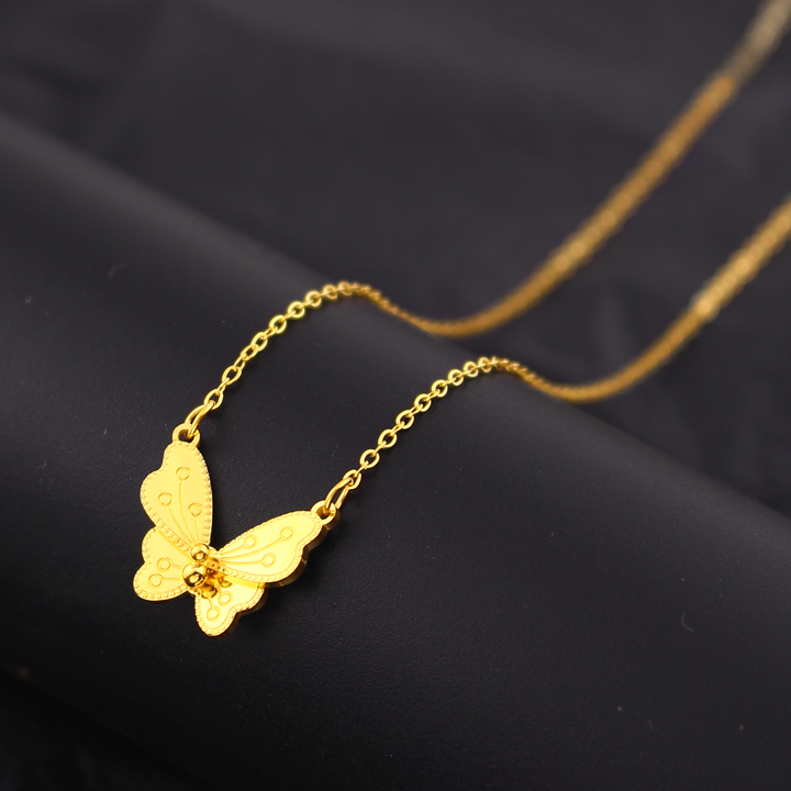 Dây chuyền nữ titan mặt hình con bướm được thiết kế đẹp mắt với đường nét gia công vô cùng tinh xảo mạng lại sự sang trọng đẳng cấp cho người đeo . Trang sức inox titan Công Sang chuyên buôn sỉ lẻ các mẫu dây chuyền vòng đeo cổ titan thời trang chất lượng cao giá tốt nhất thị trường. Chúng tôi rất hoan nghênh chào đón quí khách mọi miền đất đến đàm phán hợp tác với tiêu chí giá tốt nhất chất lượng cao mẫu mã đa dạng .