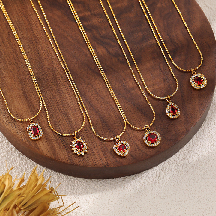 Dây chuyền titan mặt hình vuông đinh đá đỏ cực xinh chất liệu titan không đen, nơi bán dây chuyền nữ thời trang Hàn Quốc bằng chất liệu titan cao cấp chất lượng uy tín nhất HCM.
